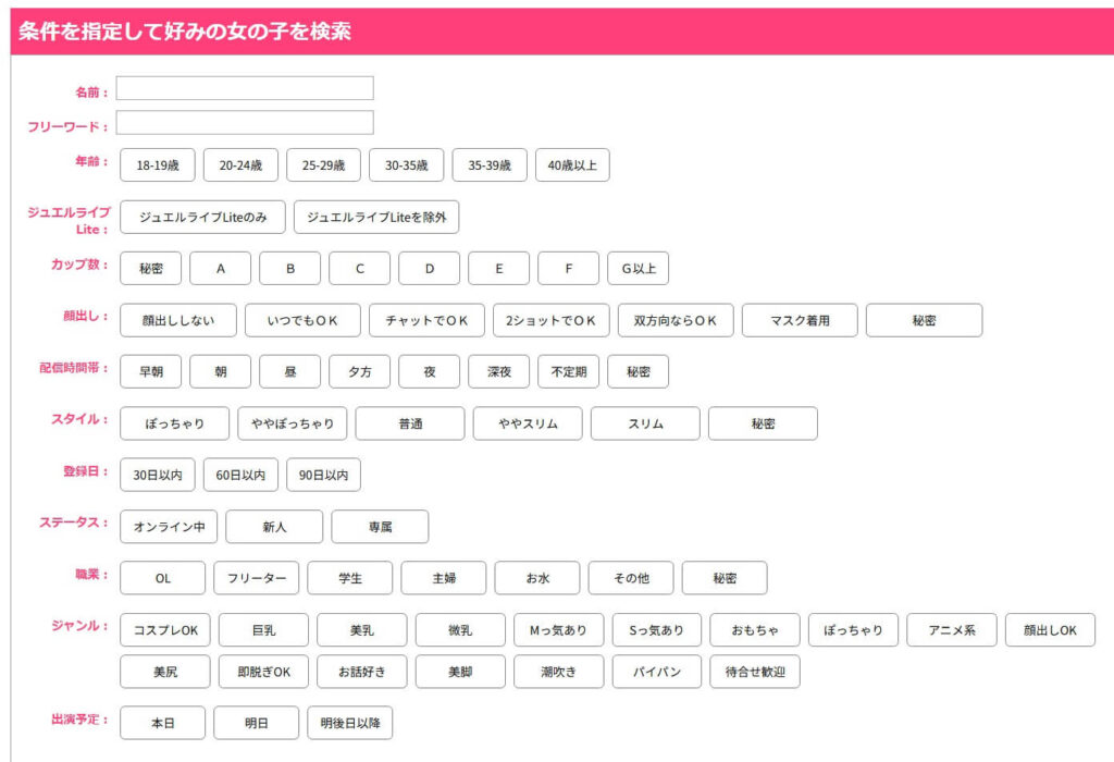 ジュエルライブの最大の魅力は、20代を中心とした若くて可愛い女性との双方向コミュニケーションが楽しめる点です。