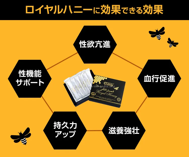 古くから健康な体づくりを支えるとされてきた蜂の子、純粋はちみつ、トンカットアリといった多彩な成分により、勃起力向上をサポートします。